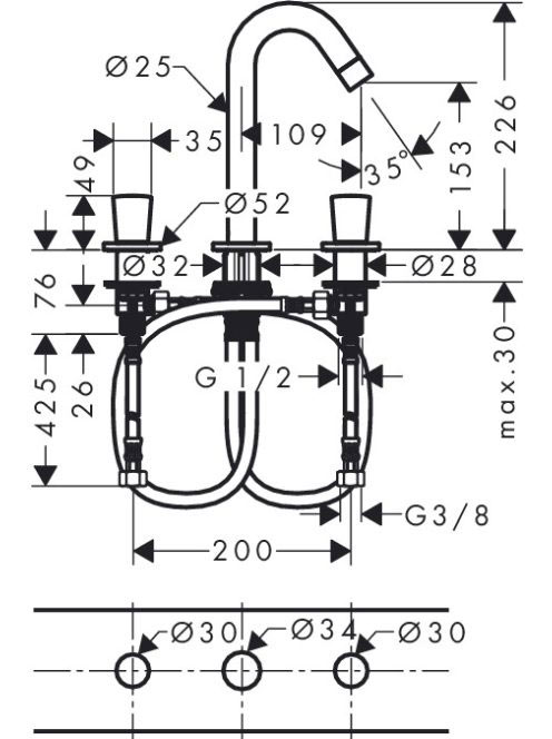 Hansgrohe Logis 3-lyukú mosdócsaptelep automata lefolyógarnitúrával, króm 71133000
