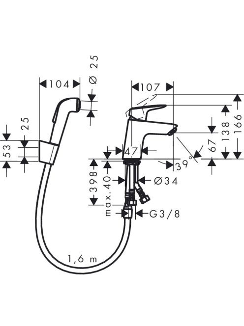 Hansgrohe Logis egykaros mosdócsaptelep bidette kézizuhannyal és zuhanytömlővel, króm 71290000