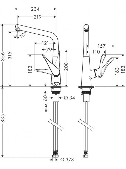 Hansgrohe Metris M71 konyhai csaptelep 320 EcoSmart, L-kifolyóval króm 14782000