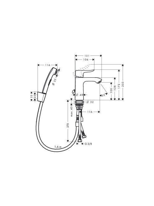 Hansgrohe MetrisBidette 1jet kézizuhany/ Metris mosdócsaptelep szett 1,60 m 31285000