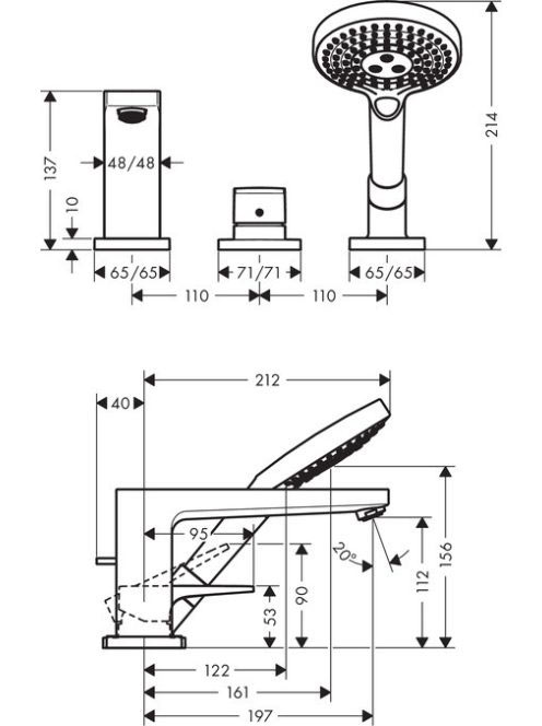 Hansgrohe Metropol 3-lyukú peremre szerelhető kádcsaptelep 32550000