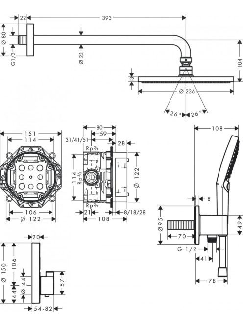 Hansgrohe Raindance S Zuhanyrendszer 240, 1 jet PowderRain és Shower Select S króm 27951000