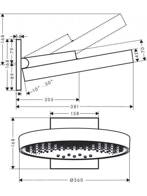 Hansgrohe Rainfinity 360 3jet, szálcsiszolt bronz fejzuhany fali csatlakozással 26234140
