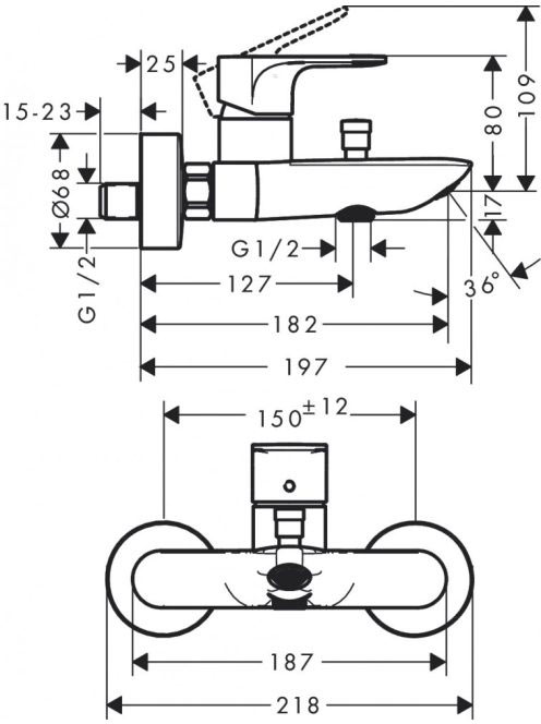 Hansgrohe Rebris E egykaros falsíkon kívüli kádcsaptelep, matt fekete 72450670