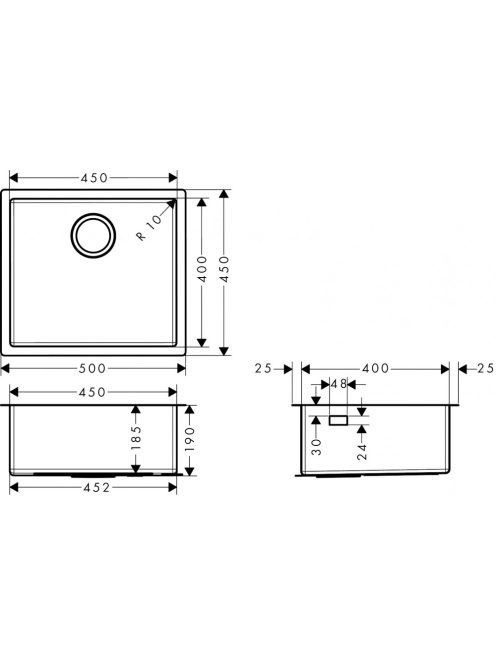 Hansgrohe S71 munkalap alá rögzíthető mosogató 450 csapfurat és lefolyókészlet nélkül rozsdamentes acél hatású 43426800