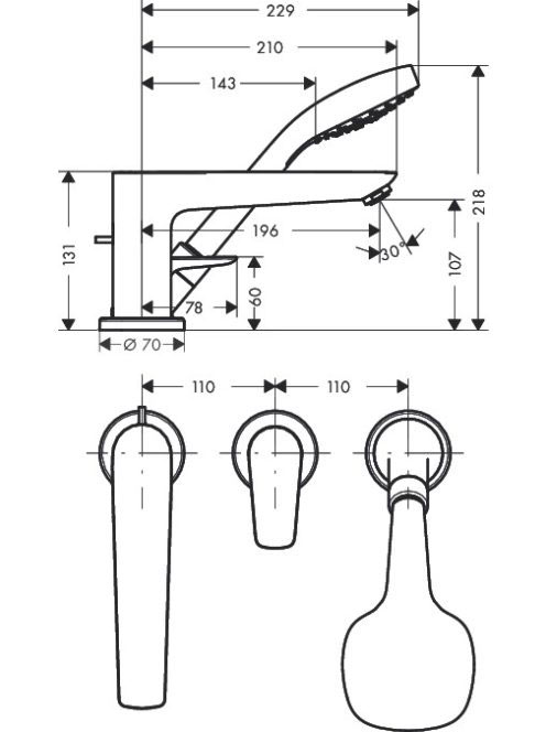 Hansgrohe Talis E 3-lyukú kádcsaptelep 71730000