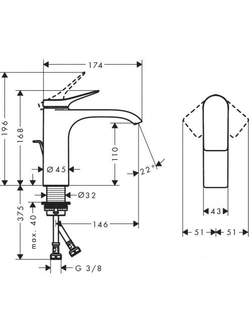 Hansgrohe Vivenis egykaros mosdócsaptelep 110, automata lefolyógarnitúrával, króm 75020000