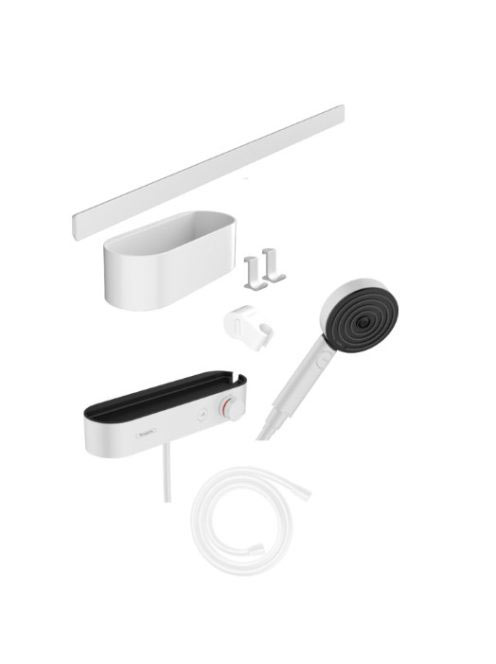 Hansgrohe WallStoris Szett termosztátos zuahnycsaptelep 3 funkciós kézizuhany EcoSmart, matt fehér 24250700
