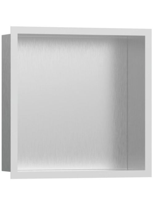 Hansgrohe XtraStoris Individual Falfülke szálcsiszolt rozsdamentes acél felülettel, design kerettel 30 x 30 x 10 cm matt fehér 56097700