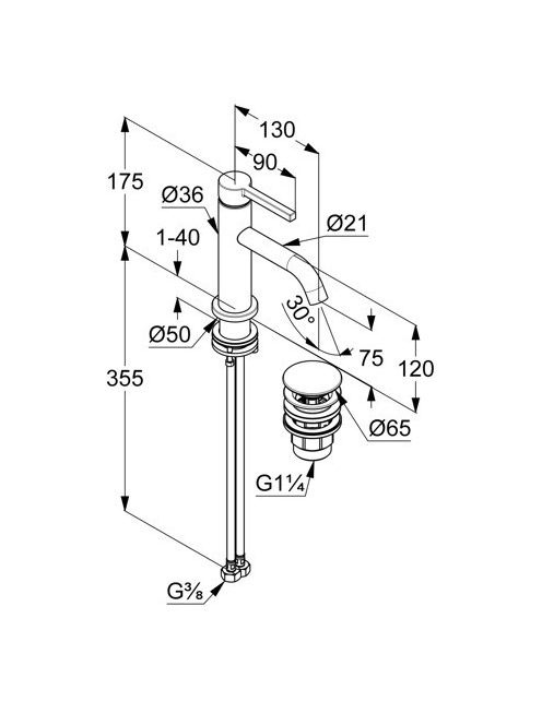 Kludi Nova Fonte Pura 75 egykaros mosdócsaptelep Push-Open leeresztőszeleppel, króm 202660515