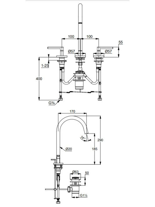 Kludi Nova Fonte Puristic háromlyukú mosdócsaptelep lefolyógarnitúrával ECO króm 201430515
