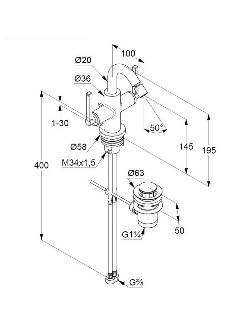 Kludi Nova Fonte Puristic kétkaros bidécsaptelep ECO funkcióval és leeresztővel, króm 203130515