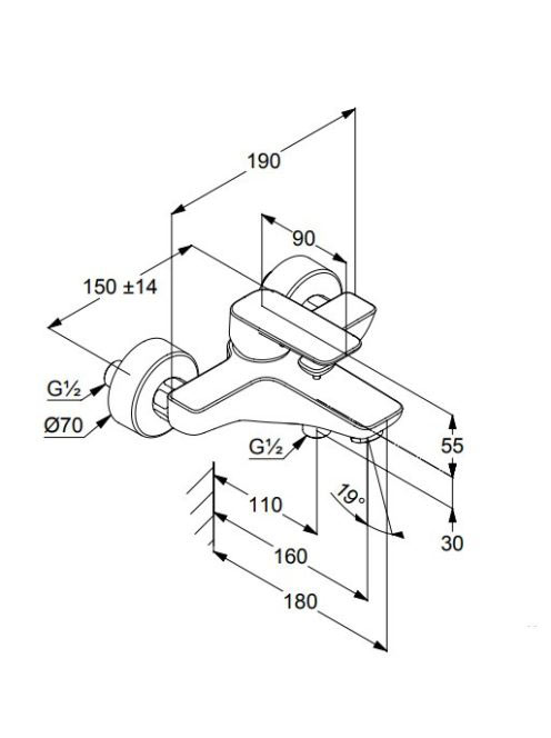 Kludi Pure&Style egykaros falsík alatti kád/zuhany csaptelep, króm 406810575