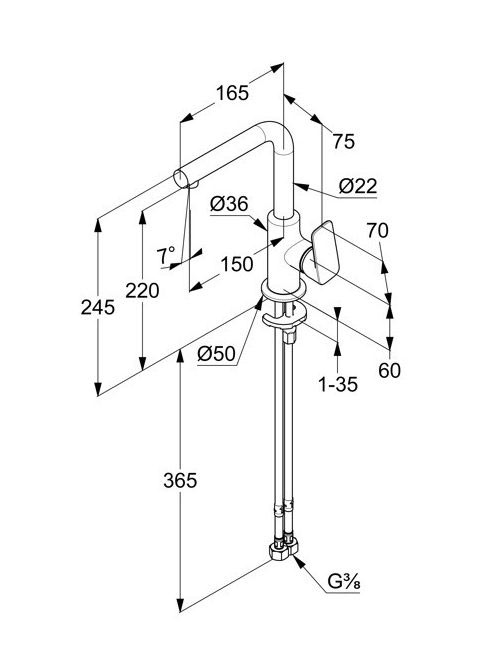 Kludi Pure&Style oldalkaros mosdócsaptelep leeresztőszelep nélkül, króm 400240575