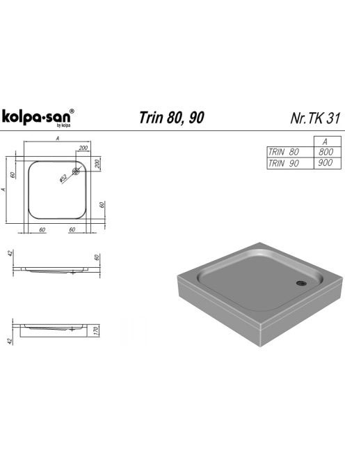 Kolpa San Trin beépíthető akril zuhanytálca 80x80 cm, fehér 754800