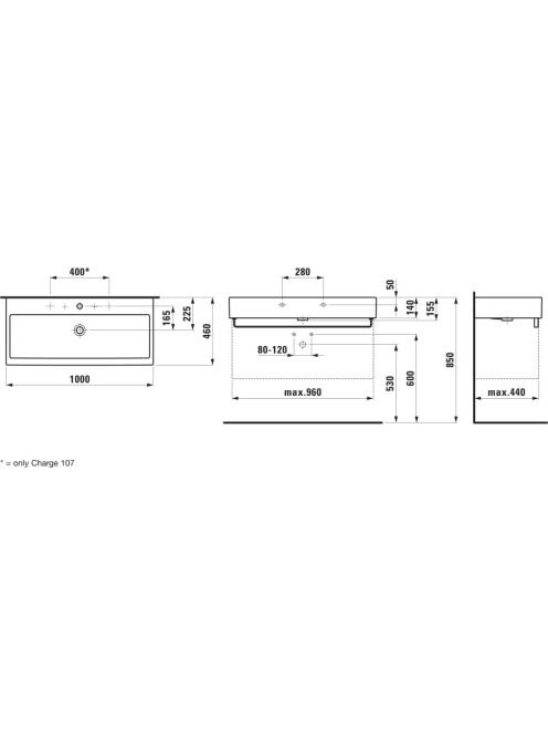 Laufen Living City kerámia mosdó 100x46 cm csaplyuk nélkül, túlfolyóval, fehér H8184370001091