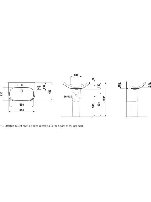 Laufen Lua kerámia mosdó 65x46 cm csaplyuk nélkül, túlfolyóval, fehér H8110860001091