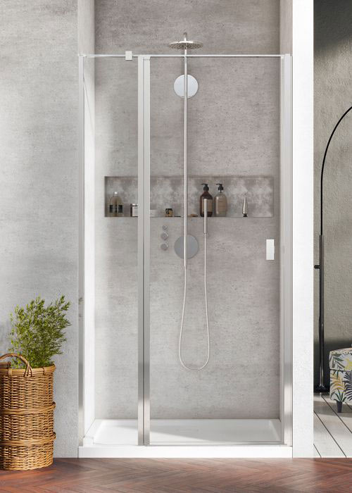Lengőajtós kivitelű zuhanyajtó maximális belépő szélességgel.