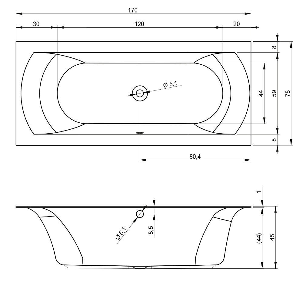 Beépíthető egyenes akril kád, ovális belső kialakítása kellemes fürdőzést kölcsönöz tulajdonosa számára.