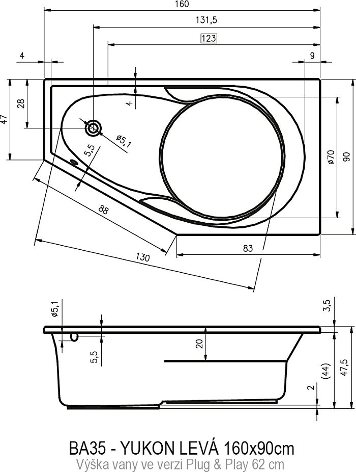Riho Yukon Plug & Play Bal sarokkád 160x90 cm