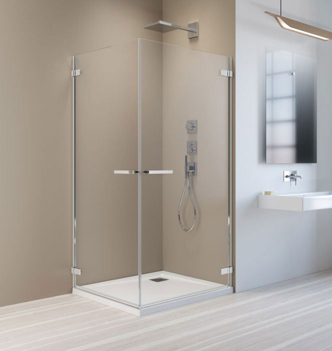 Kifelé-befelé nyíló szögletes zuhanykabin két nyílóajtóval.
