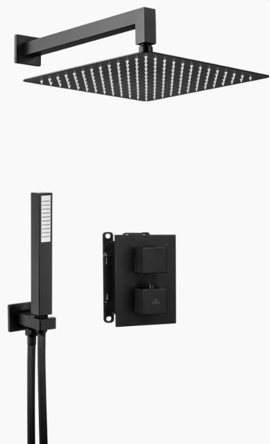 Deante Box nero szögletes, termosztátos készlet, falsík alatti egységgel